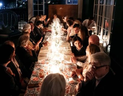 Amanda Lindroth host a dinner party for British fabric house Christopher Farr Cloth and Palm Beach’s Fernando Wong to celebrate Palm Beach Design Days